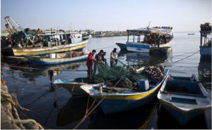 : फ़िलिस्तीनी मछुआरे गाजा तट से कुछ मील से अधिक दूर नहीं जा सकते। इज़राइली नौसेना अक्सर मछुआरों की नावों पर गोलीबारी करती है, उन्हें गिरफ़्तार करती है, या अगर वे निर्धारित सीमा से आगे निकल जाते हैं तो उनकी नावों और जालों को ज़ब्त कर लेती है। संयुक्त राष्ट्र के अनुसार, ये प्रतिबंध गाज़ा की अर्थव्यवस्था और मछुआरों की आजीविका को गंभीर रूप से नुकसान पहुँचाते हैं, क्योंकि मछली पकड़ना गाज़ा के 20 लाख निवासियों के भोजन का एक प्रमुख स्रोत है।